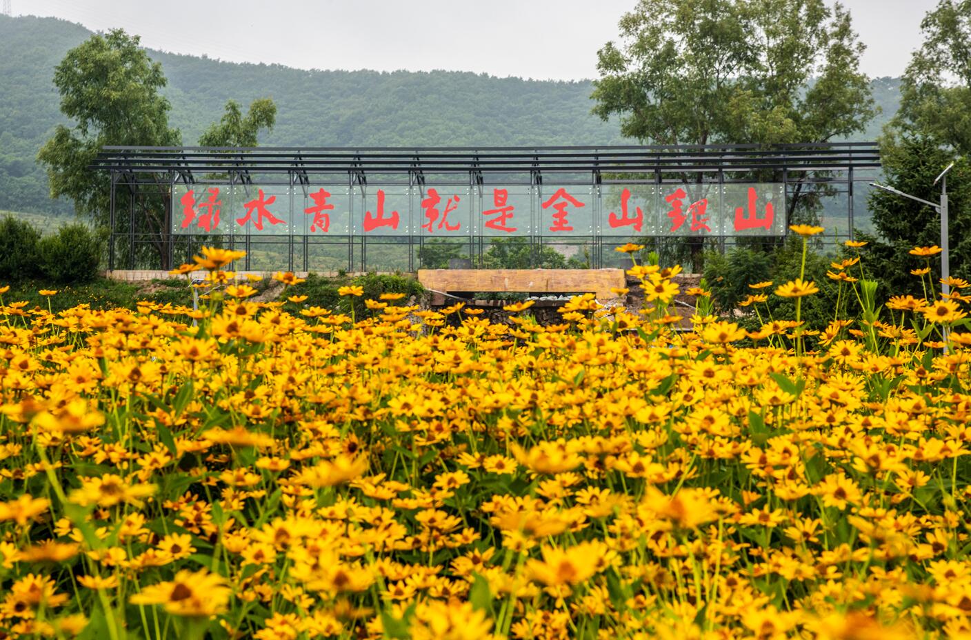 (二)萬類霜天競自由。大梨樹春天是花園,夏天是公園,秋天是果園,冬天是樂園,是名副其實(shí)的綠水青山。先后榮獲中國人居環(huán)境范例獎、中國最美休閑鄉(xiāng)村、中國綠色村莊、全國文明村等諸多榮譽(yù)。一是補(bǔ)償生態(tài)欠賬。先后出工10萬多人次,開辟盤山作業(yè)道路87公里;治理大小荒山20多座、平整水平梯田1萬多畝;修建河流14公里,水庫池塘7處、攔水壩20多座;栽種桃、蘋果、梨、板栗等果樹上百萬株。二是堅(jiān)持生態(tài)投入。每年投資50余萬元,推進(jìn)生態(tài)建設(shè),建成草坪3萬平方米,栽植景觀樹木6萬多株,路邊、河邊綠化60公里,街巷綠化5公里。強(qiáng)化山間道路管護(hù)和修復(fù)。對中心區(qū)小運(yùn)河進(jìn)行定期清淤,實(shí)施兩岸護(hù)坡改造工程。三是鞏固生態(tài)成果。通過《村規(guī)民約》強(qiáng)化了對山林樹木的管理,通過集中供暖和改變能源結(jié)構(gòu),極大地降低薪材用量,提高木材自然蓄積量。采取措施,對原有的加工型企業(yè)進(jìn)行資產(chǎn)整合和技術(shù)改造,清理污染源。拒絕任何來村進(jìn)行勘探采礦的生產(chǎn)項(xiàng)目,防止對生態(tài)環(huán)境造成破壞。大梨樹村森林面積達(dá)3500公頃,森林覆蓋率80%,宜林荒山綠化率90%,公路兩側(cè)荒山坡綠化率98%,在中國名村評選中“綠化指數(shù)”名列前茅;水域面積10萬多平方米,地表水各項(xiàng)指標(biāo)年均值達(dá)到Ⅲ類水質(zhì)標(biāo)準(zhǔn);環(huán)境空氣優(yōu)良天數(shù)比例為94%。