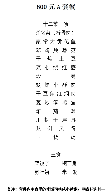 (因時(shí)令原因個(gè)別菜品會(huì)有替換 以現(xiàn)場(chǎng)為準(zhǔn))