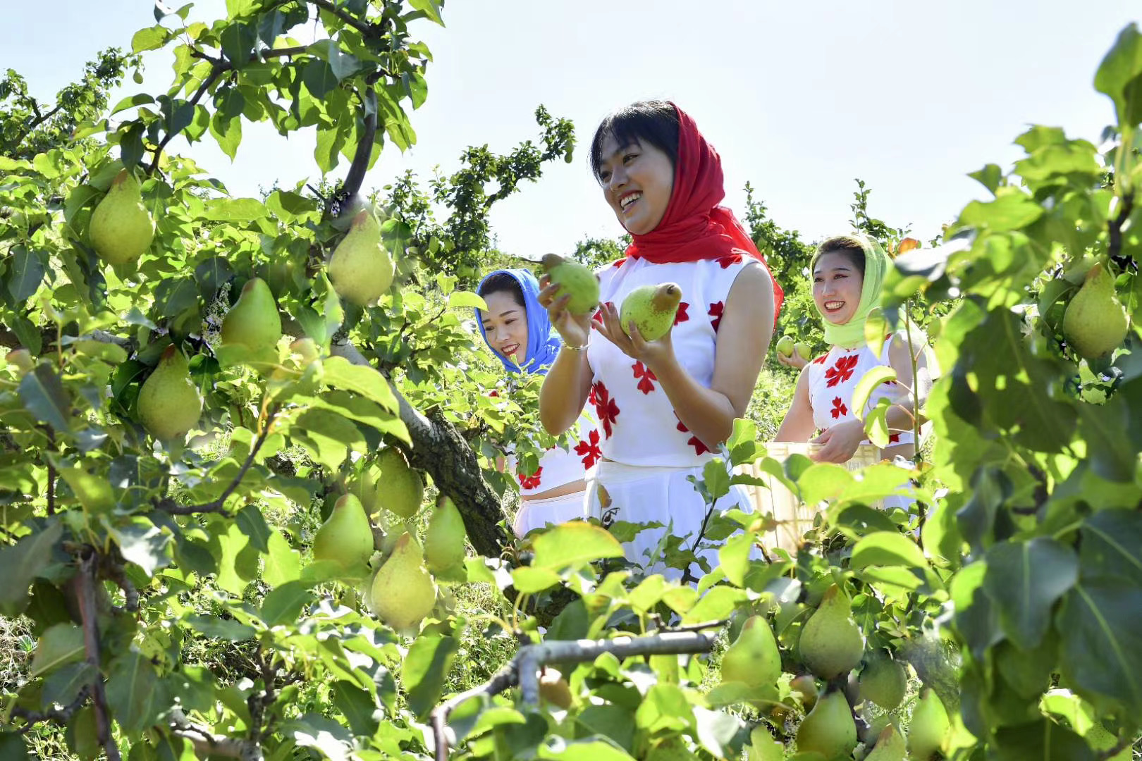 老書(shū)記曾說(shuō):我們雖然改不了天,但可以換地。憑借干字精神,把荒山禿嶺建設(shè)成為流金淌銀的花果山,栽滿了搖錢樹(shù)。從1989年到1998年,整整十個(gè)年頭,大梨樹(shù)人小突擊,大會(huì)戰(zhàn),專業(yè)隊(duì)伍長(zhǎng)年干。鎖頭看家,煙筒站崗,開(kāi)辟山間作業(yè)道87公里,修整梯田10600畝,栽種各種果樹(shù)超過(guò)百萬(wàn)株,創(chuàng)造出了全國(guó)最大的村級(jí)集體果園。