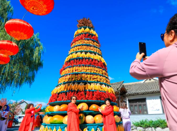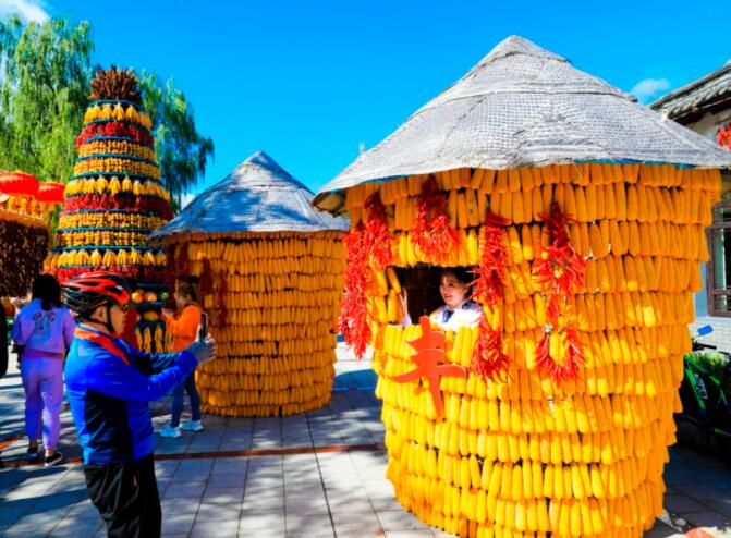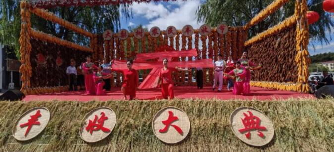 豐收大舞臺,唱起歌來跳起舞。又到一年豐收季,豐收塔下展笑顏。